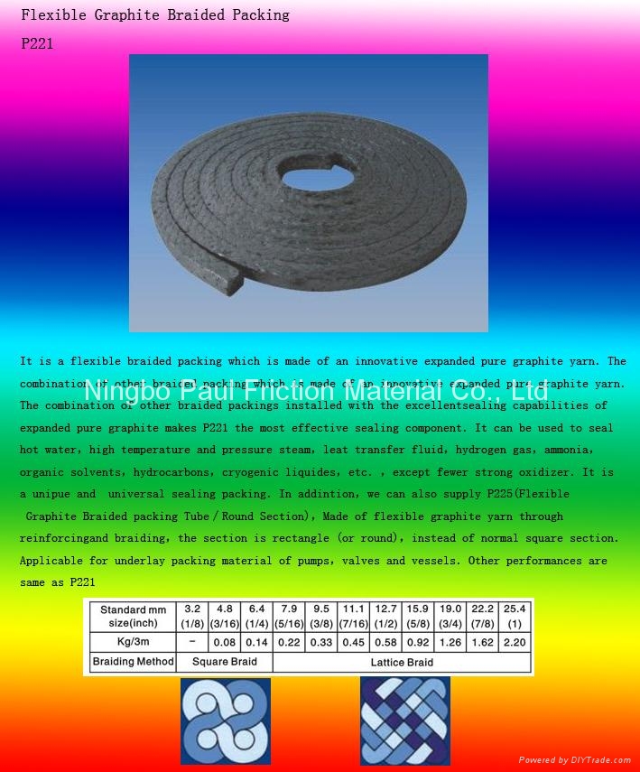 The carbonzed fiber yarn is treatded with graphite particles,and then is braided to form packing,its surface is coated with an high-temperature-proof lubricant,it is able to bear high temperature and pressure,and helps prevent abrasion and volume loss to the packing rings,it can also help to minimize the effects of electrolytic pitting of the valve stem.